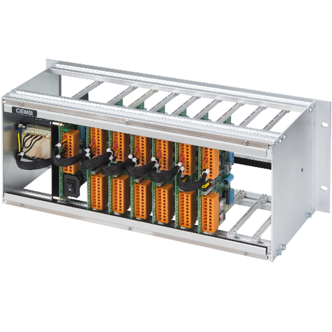 Inside a rack 8 dual channel processing modules can be installed for the acquisition of 16 T1-40 velocity sensors signals.